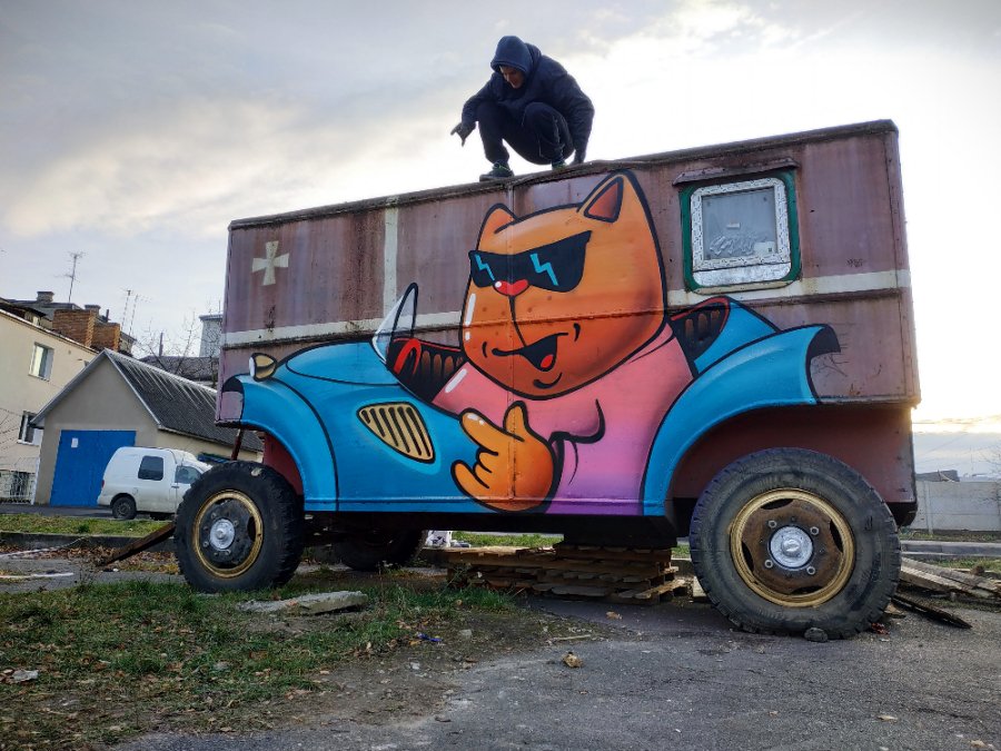 Зараз малюю різні котячі морди на трансформаторних підстанціях або плитах. Мені це дуже подобається, і коли їх малюю, то наповнююсь позитивом, розслабляюсь.