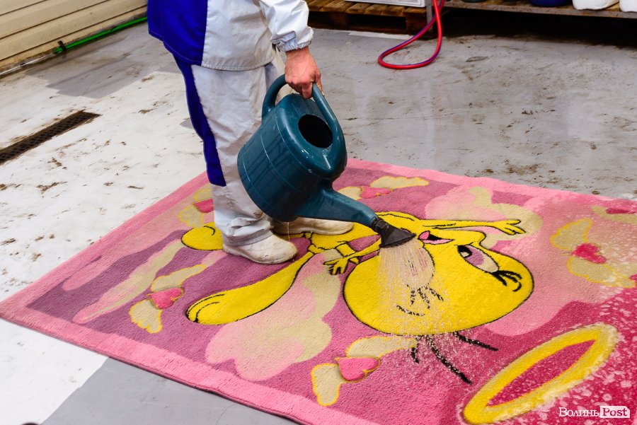 Далі килим пилососять і розчісують ворс, опісля чого поприскають його спеціальними «килимовими» парфумами, які є абсолютно безпечними та водночас надають виробу приємного аромату.