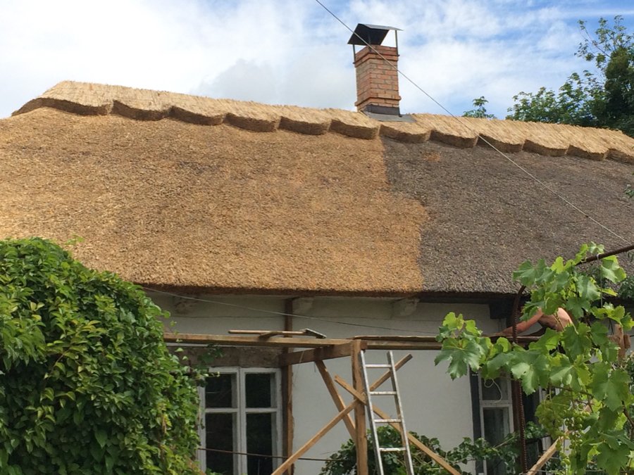Чоловік має великий досвід і багаж знань, практикує технологію роботи із очеретом, яку привезли із Англії, тож гарантує висококласну якість і довговічність свого «стріхового мистецтва».