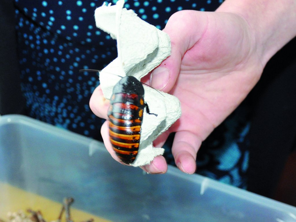 У пластиковому контейнері поряд живуть таргани. І не просто якісь там, а мадагаскарські. Це великі тропічні комахи, які ще й шиплять наче змії. Перше враження — страшно, але викладач-еколог запевняє — це безпечні тваринки і цікаві для спостереження.