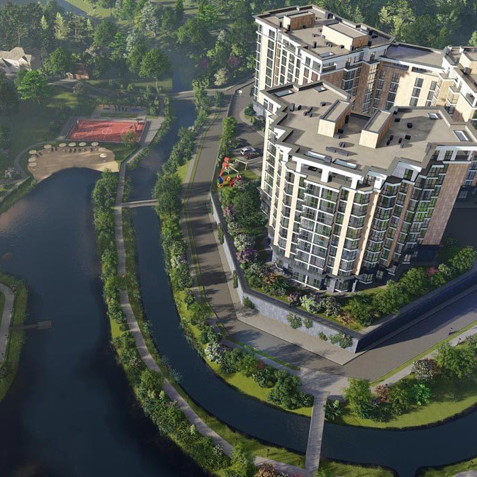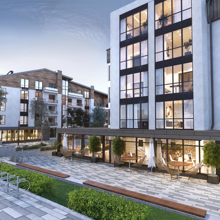 Тут є усе, що потрібно для повноцінного комфортного проживання: дитячі майданчики, зони відпочинку, гаражі, гостьовий паркінг, унікальний ландшафтний дизайн та бігові доріжки. Усе це на території ЖК. Помешкання мають функціональні планування, можливість перепланування для вашого комфорту, індивідуальне опалення та звукоізоляцію стін.