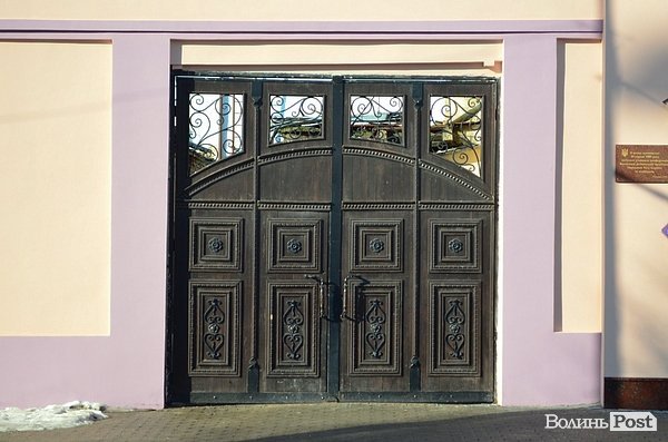 Ліворуч від головного входу в театр знаходяться цікаві ворота. За художньою стилістикою вони нагадують ще довоєнні луцькі двері.