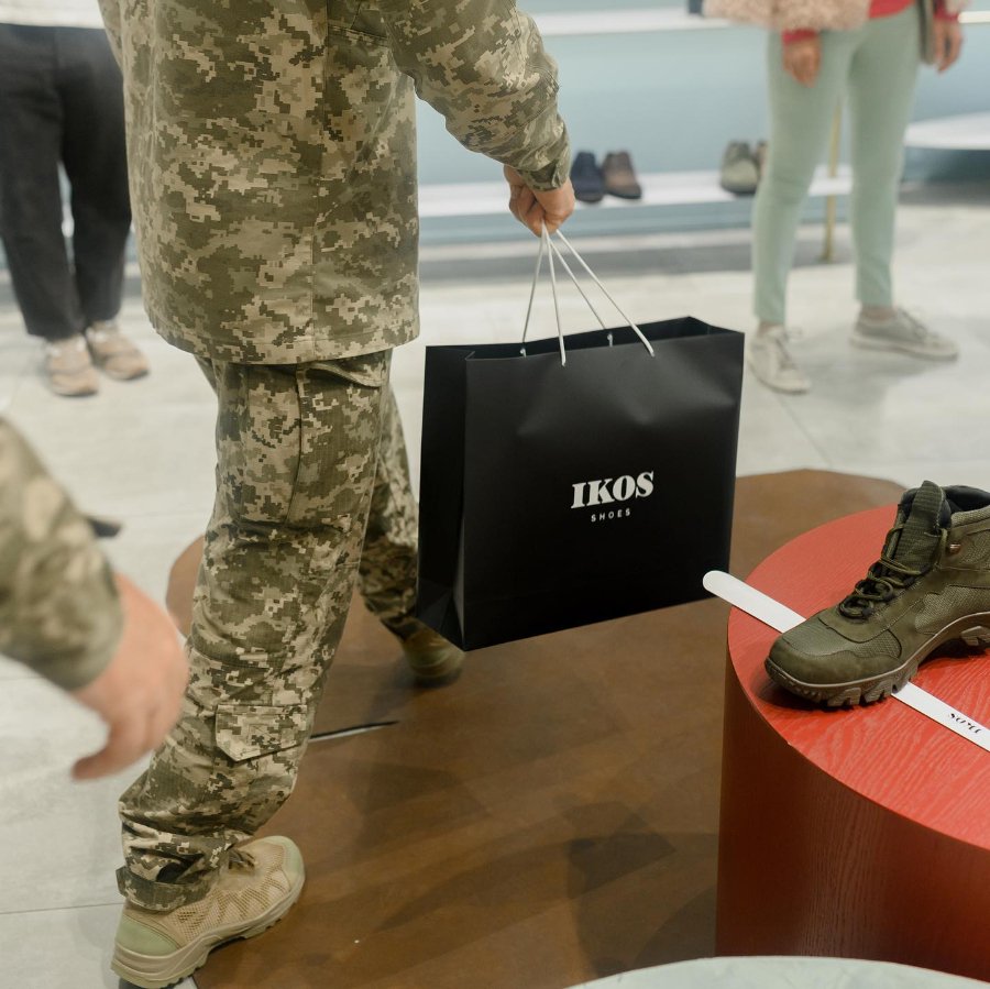 У той час «Ікос» скооперувався з київським брендом взуття Kachorovska. Вони оголосили збір коштів на виготовлення взуття військовим, збирали замовлення і виготовляли. Вийшло так, що бренд отримав замовлень більше, ніж міг зробити без затримок. Натомість «Ікос» вже розробив черевик, але ще не мав замовлень.