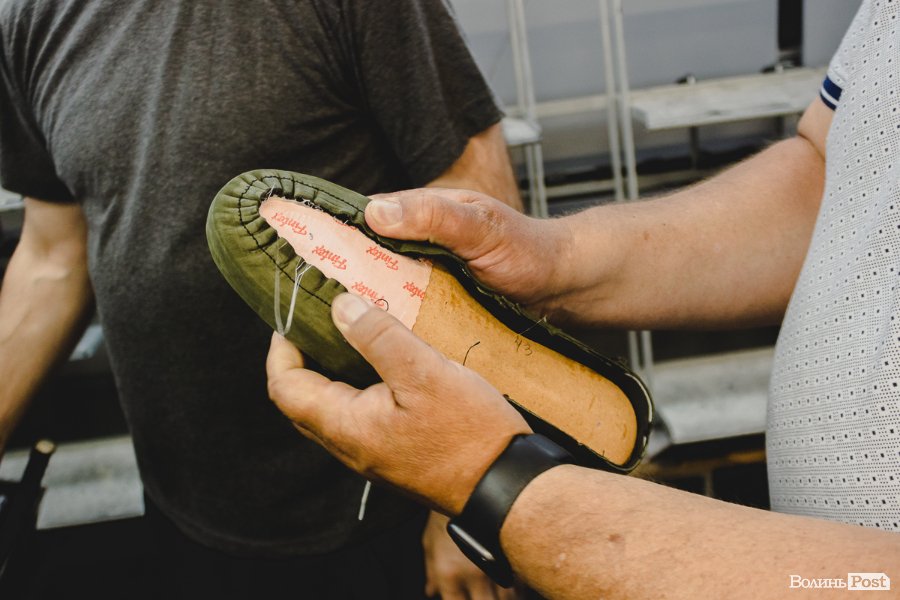 «Бо це як клейонка. Не можна з такого матеріалу робити взуття для людей. Тим більше, для тих, які мають перебувати у ньому цілими днями», – додає її батько. Зрештою, він зателефонував давнім партнерам з Туреччини, аби поцікавитися, який матеріал використовують для сітки у взутті для військових у їхній країні. А турки, довго не розмірковуючи, надіслали чимало якісної сітки.