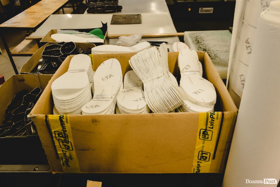 «Ще 23 лютого ми готувалися до зйомки з класичним взуттям. А вже 24 лютого рубали устілки на пресі, шукали хутро і картон, клеїли, обшивали. Загалом ми зробили більше 10 тисяч устілок, які розвезли спочатку військовим по Луцьку і які потім роз’їхалися завдяки волонтерам всією Україною», – розповідає донька засновника Іванка Ковальчук, яка займається моделюванням взуття на фабриці.