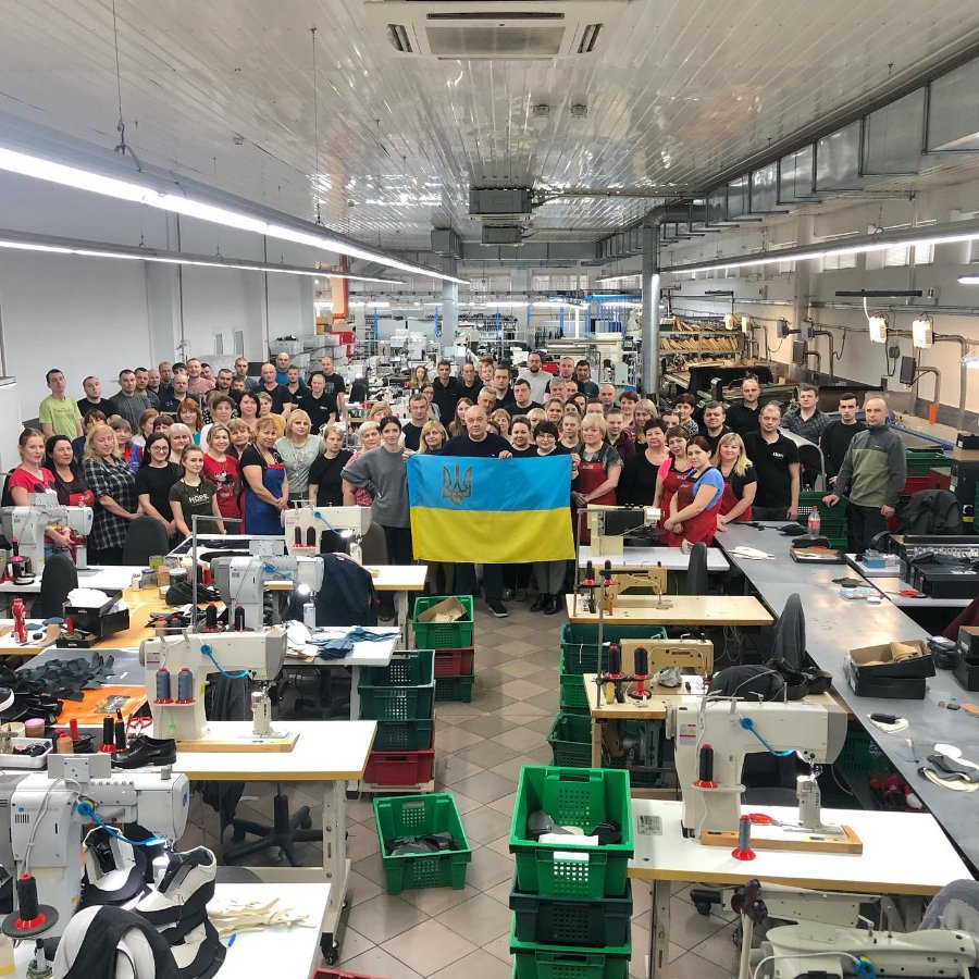 Фото з соцмереж бренду. Зроблене 23 лютого. Тоді до спільного фото додали: «Продовжуємо створювати взуття. Дбаємо. Віримо. Переживаємо, але не панікуємо. І головне — підтримуємо українську армію. Слава Збройним Силам України! Слава Україні!»