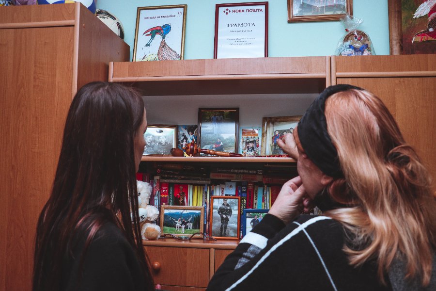 «А це ми якраз сьогодні забрали зі штабу частини», – тремтячими руками жінка відкриває коробку із медаллю «Захиснику Вітчизни», якою президент Володимир Зеленський посмертно нагородив її сина. Кладе її на столі у Вадимовій кімнаті.