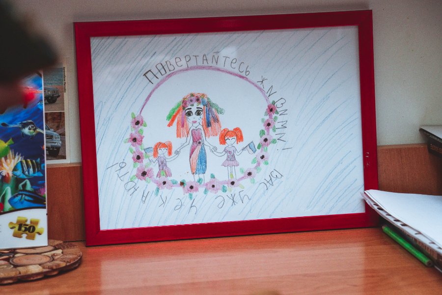 Тут – його фото з дитячих років і подорожей, його книжки, його грамоти і статуетки, дитячий малюнок, привезений ним із зони АТО. На малюнку – текст: «Повертайтеся живими. Вас уже чекають».