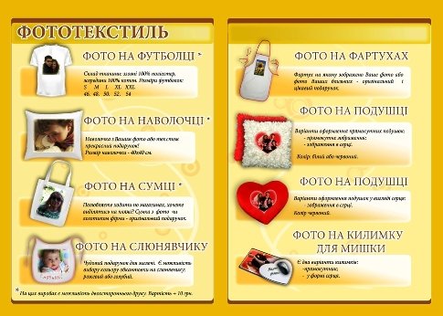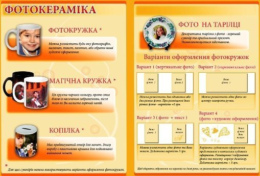 Магазин Ціфролаб пропонує друк зображень на горнятку, скарбничці, сумці, футболці, декоративній тарілці, фартуху, подушці, брелку чи календарі. Подушку можна оформити у формі серця чи прямокутної форми.