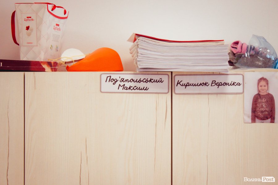 – Готують проєкт до Дня Конституції (усміхається – ред.). У кожного – своя парта. Статичного сидіння немає, під час уроку вчитель може дітей «рухати». У класі розміщені шафки для зберігання особистих речей. До речі, ми повністю забезпечуємо дітей матеріально-технічною базою, зокрема підручниками, зошитами, канцелярією. Якщо діти зробили «домашку» в школі – додому можуть нічого не брати.