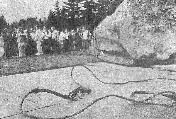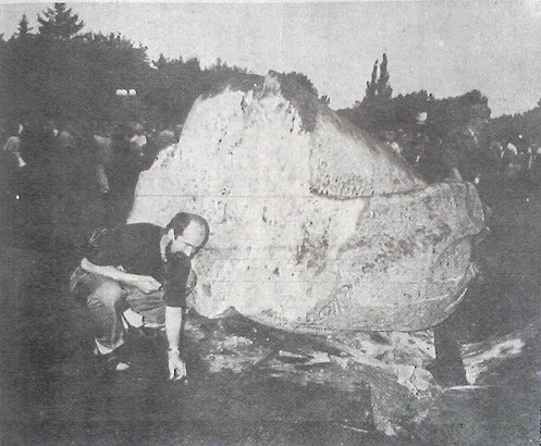 Уламки розбитого Ілліча розглядає один з активістів визвольного руху на Волині Олександр Гудима. Фото з газети «Народна трибуна», серпень 1991