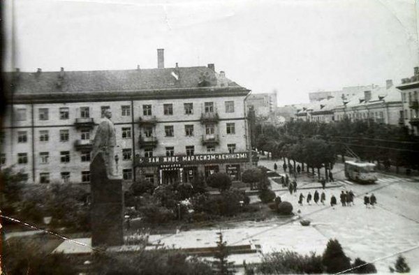 Як пише дослідниця Оксана Важатко, у 1962 році з нагоди 45-ї річниці Великої Жовтневої соціалістичної революції на вулиці 50-річчя Жовтня (тепер вулиця Потебні) встановили пам’ятник Леніну. Виготовлена на Львівському художньо-виробничому комбінаті художнього фонду УРСР скульптура зображала Леніна у повний зріст.