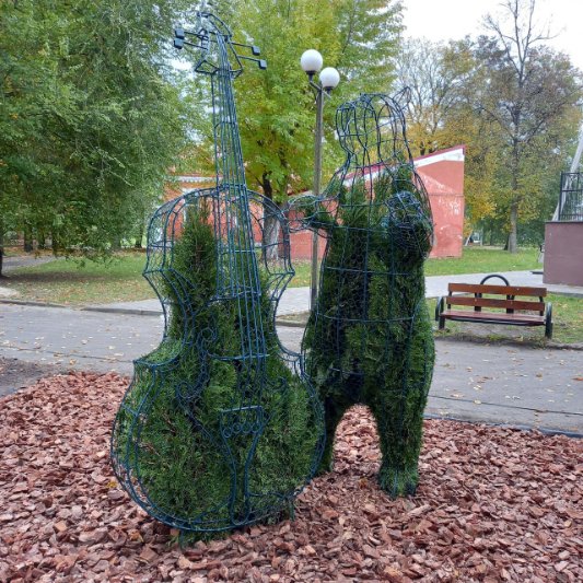 Топіари — це зелені живі скульптури з кущів та металевих каркасів, які встановлюють у паркових зонах. Щоправда, це доволі вибагливі ландшафтні елементи: потребують догляду і після хуліганства вандалів можуть не вижити.