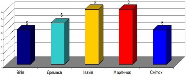 середній – Вітів А.М., Мельник Є.І., Палиця І.П., Смітюх Г.Є.;