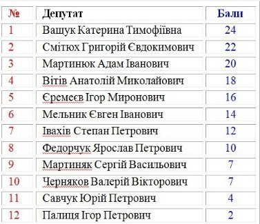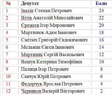 Таблиця 5. Рейтинг народних депутатів від Волинської області за 6 місяців роботи