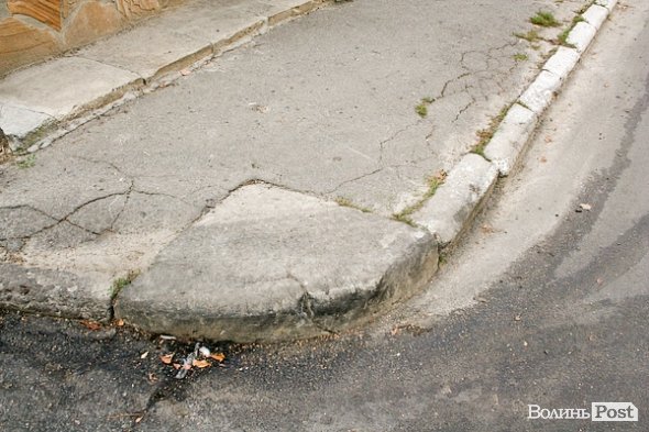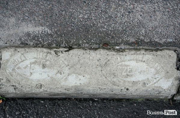 А це бордюри, зроблені на замовлення Луцького магістрату. Відтак на них є штамп: «міський уряд міста Луцька». Такі бордюри можна знайти на багатьох вулицях.