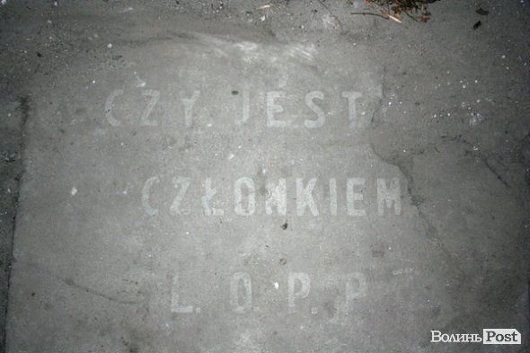 Це своєрідна плита, яка схиляла думати людей про членство в авіаційній організації Речі Посполитої. Щось на зразок відомого радянського плакату – «Ты записался добровольцем?». Але на відміну від агресивного чоловіка на радянському плакаті, напис на плиті не нав’язливо запитує – «Чи є членом LOPP».