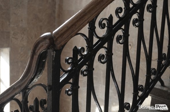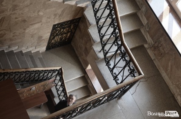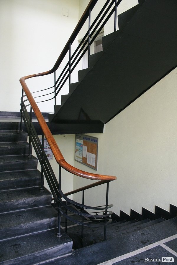 Ще один цікавий під’їзд – у приміщенні «Укртелекому» на вулиці Кривий Вал. Орнамент сходів із чорного і білого мармуру, цікаві закручені дерев’яні поручні, конструктивістські металеві «прольоти».