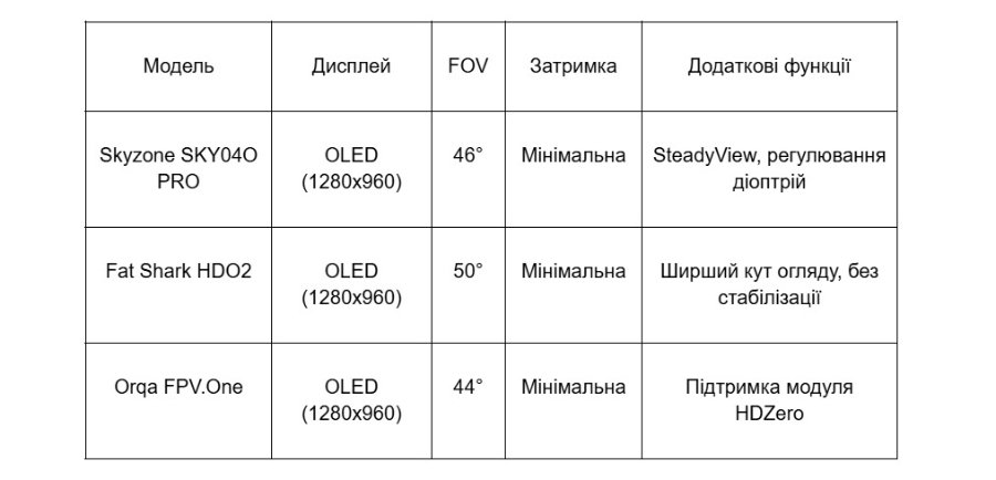На ринку FPV-окулярів вже представлені сильні конкуренти, такі як Fat Shark HDO2 та Orqa FPV.One. Розгляньмо, чим Skyzone SKY04O PRO виграють чи програють у порівнянні: