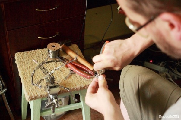 Уже майже готовий каркас ляльки, зробленої із металевих деталей. «Було важко знайти потрібні деталі, підібрати матеріал, але я вчуся в процесі роботи. Майбутня робота – лялькова анімація. Я використаю каркасну ляльку з рухомими частинами тіла. Працюватиму у кількох техніках під час роботи».