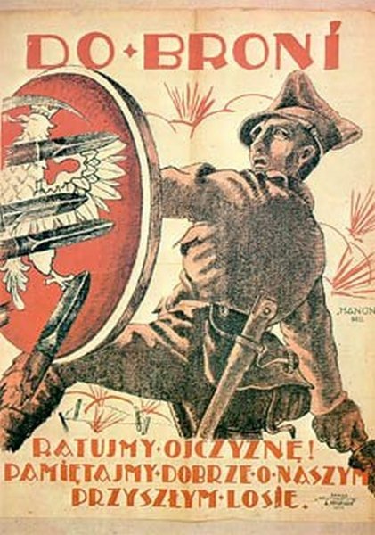 Польський плакат перших днів війни. Напис: «До зброї! Врятуємо Батьківщину! Пам’ятаймо про нашу минулу долю» (у минулому поляки були поневолені іншими народами.