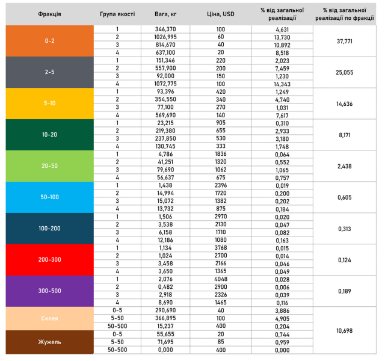 За аналогічний період – 2024 рік – видобуто 6 754,524 кг бурштину різних фракцій та груп якості, реалізовано – 6 246,120 кг на загальну суму 58,859 млн грн. Залишок бурштину на складі станом на 31.12.2024 року становив 1 159,628 кг бурштину.