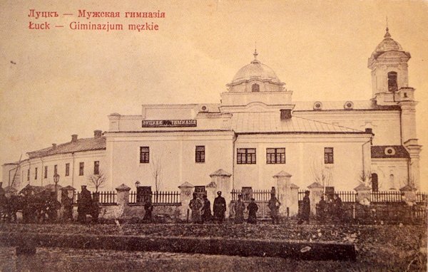 Чоловіча гімназія і ліхтарі. Фото з книги «Луцьк у старовинній листівці, гравюрі та фотографії» Віктора Літевчука