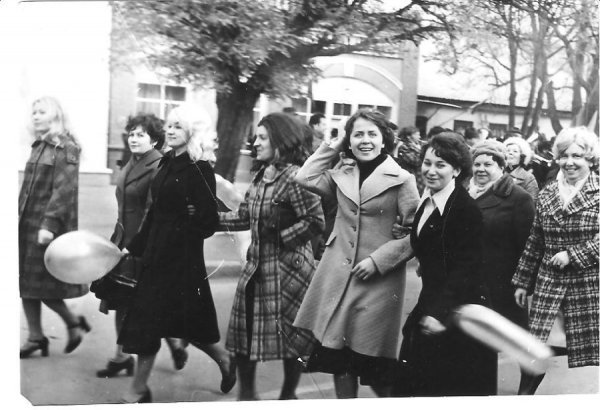 1977 рік. Вчителі Ковельської музичної школи на першотравневій демонстрації. Зоя Комарук - п'ята ліворуч