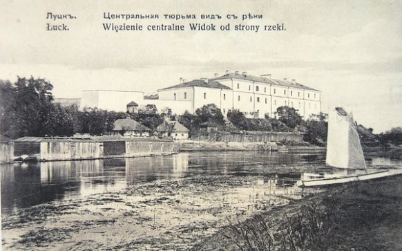 Вигляд на монастир бригідок з лівого берега Стиру. Справа - парусний човен. Зображення з книги «Луцьк у старовинній листівці, гравюрі та фотографії» Віктора Літевчука