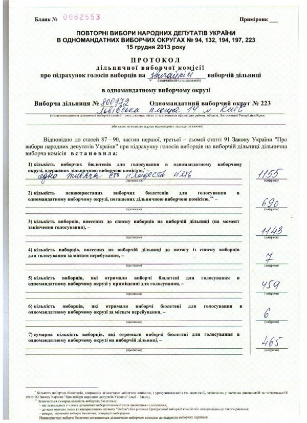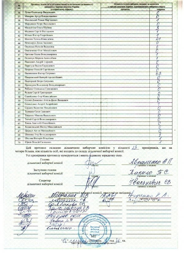 Нарешті хтось «достукався» до ОВК: голові комісії зателефонували, що секретарю дільничної комісії достатньо заповнити лише перші чотири «обов’язкові» примірники протоколів. Решту можуть заповнити інші члени ДВК – кожен для себе. Голова комісії нарешті дала вказівку підписувати перші примірники…