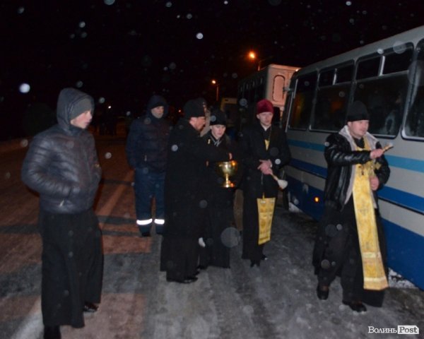 Священики прочитали тропар та окропили всіх присутніх та автоколону свяченою водою. Командири ВВшників чомусь не відкрили святим отцям двері до автобусів...