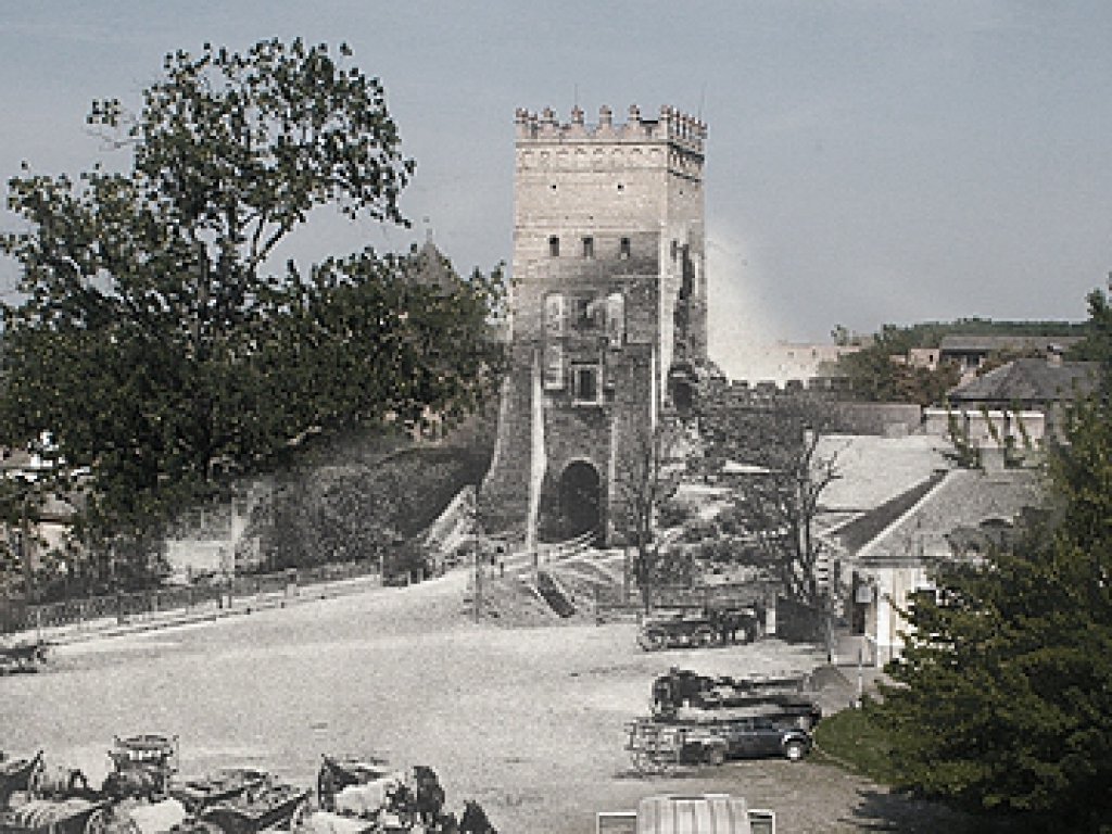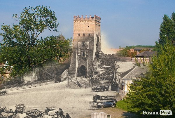 Замок Любарта. Вважається, що вперше фотографію замку зробили у 1866 році. Її автором був фотограф Козловський. Згодом з фото стали робити поштівки. Ця фото, елементи якої використані нижче, зроблена в перше десятиліття ХХ століття. На майдані біля твердині видно вози з кіньми, Лесин ясен ще малий.