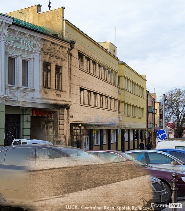 Нацбанк. Будівлю волинської філії Національного банку України будували як Польський банк у 1926 році. Фінансування проводилося центральним органом Польського державного банку, який загалом витратив майже 800 тисяч злотих на будівництво в Луцьку. В пам'ять про закінчення будівництва було зроблено два знаки, які збереглися. Один із них знаходиться на в'їзних воротах у внутрішній двір - на ньому розміщене число 1926. Інший знак розташований над сходами у центральному вхідному коридорі.