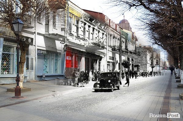 Вулиця Лесі Українки. Ця вулиця стала основною вулицею міста ще з другої половини ХІХ століття. Вона найінтенсивніше забудовувалися новими будинками, тут відкривалися магазини, книгарні, фотосалони, готелі, ресторани, кав’ярні, кінотеатри. Саме на цій вулиці був перший пам’ятник в Луцьку російському імператору Олександру ІІІ. Пізніше неподалік стояв монумент Сталіну. Перше фото - до Першої світової війни, друге - одразу після Другої.