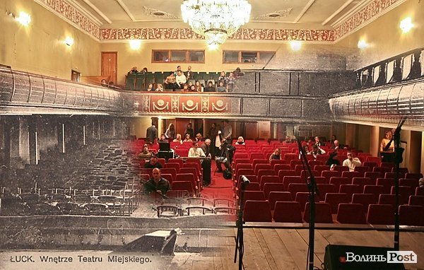 Театр ляльок. У міжвоєнний період в цьому приміщенні був міський кінотеатр. А також певний період - театр. Загалом споруда складається з кількох різночасових прибудов. Міський кінотеатр серед інших кінозалів міста був улюбленим місцем багатьох лучан. На фото - зала у тридцятих роках.