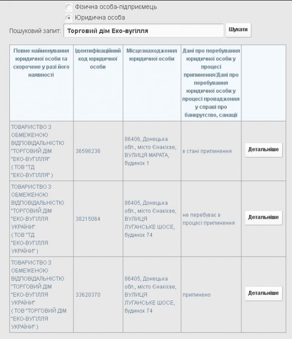 Виходить, фірма, яка брала кредит у «Західінкомбанку» в 2010 році, припинила своє існування? Як раніше – її заставодавець. До речі, і «Еко-вугілля», і «Еко-вугілля України» зареєстровані… в Єнакієвому.