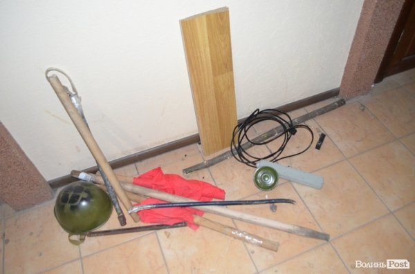 «Вот сволочі», - не стримує своїх емоцій головний «антифашист» Волині. Обком і справді виглядає жалюгідно – розірвані червоні прапори, розламані древка знамен.