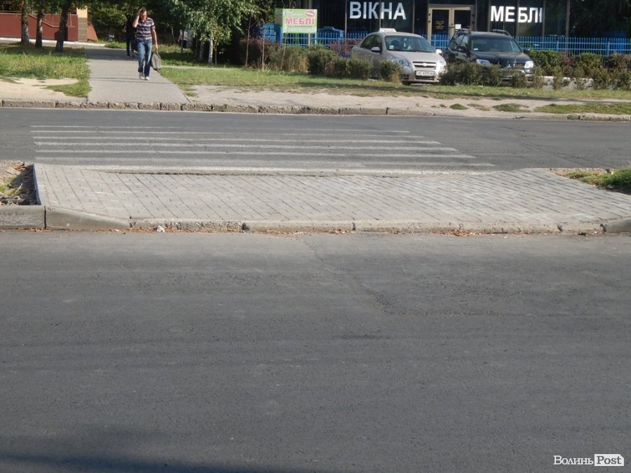 Коли пройтися Луцьком, то можна побачити насправді комічні і незрозумілі речі. Наприклад, біля ЦУМу, в напрямку готелю «Україна» одна сторона пішохідного переходу облаштована пониженим бордюром, а інша – ні.