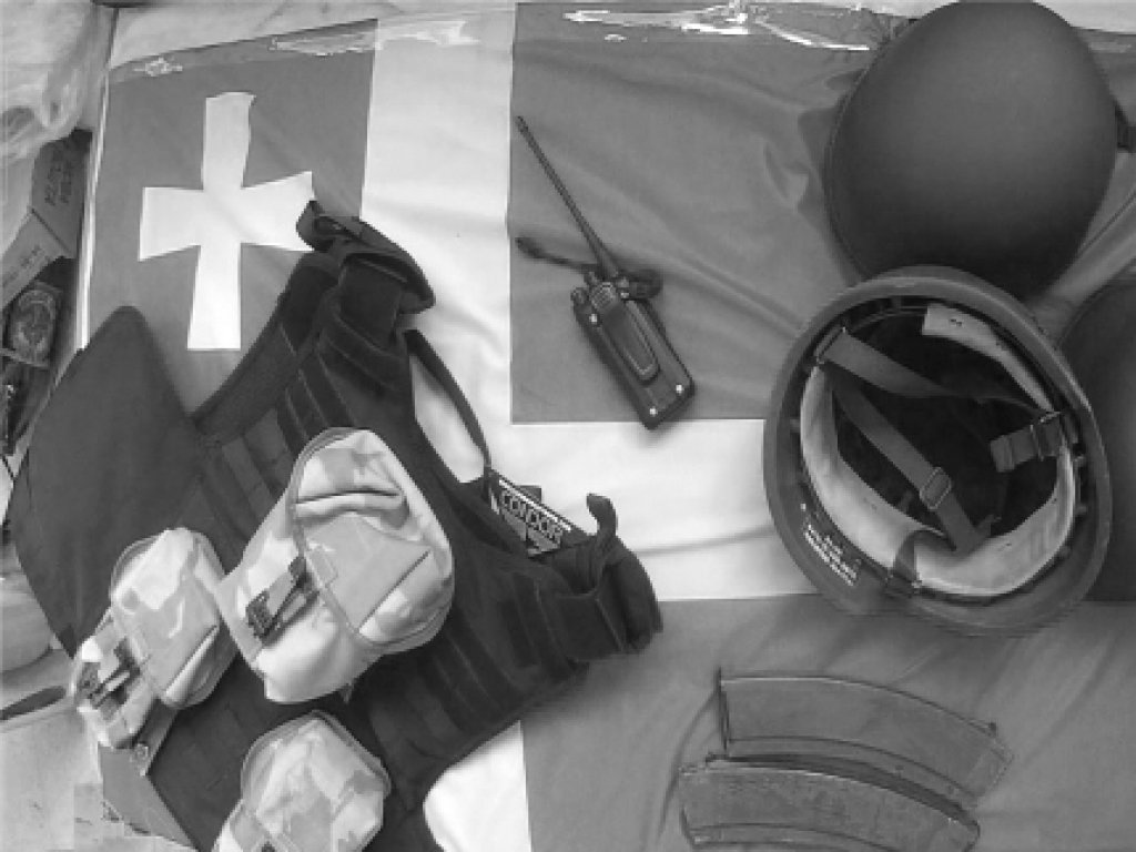 Бронежилети. Також кевларові. Досвід поточної кампанії свідчить, що більшість вбитих або поранених бійців постраждали не від кулі, а отримали ураження від уламків артилерійських снарядів. Кевлар дуже добре тримає такі уламки. Хорошими є польські бронежилети. Краще брати такі, що дозволяють розмістити на собі також і магазини для автомату (так звана система «Моллі»). Це створить додатковий захист для бійця та дозволить обійтися без розвантажувальної системи.