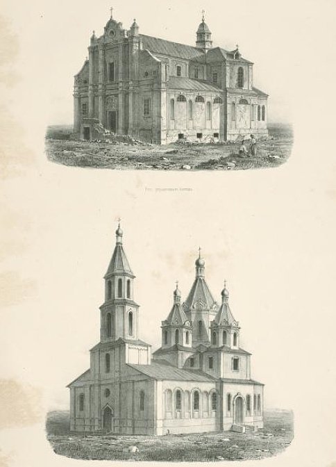 Проект перебудови бернардинського костелу в православний собор. Малюнок Струкова. Зображення з книги «Памятники старины въз ападныхъ губерніяхъ имперіи»