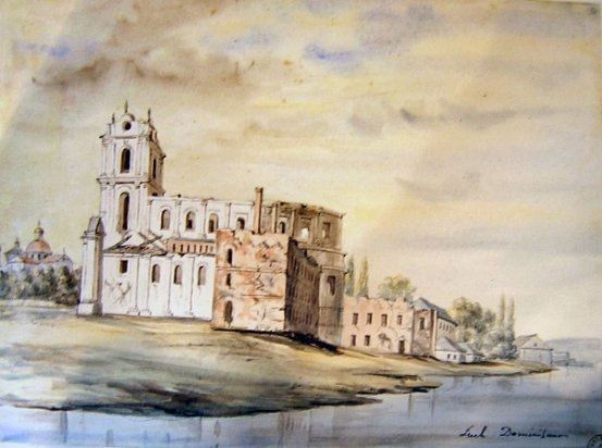 Руїни Дмитрівської церкви на нинішній вулиці Кафедральній. Малюнок Струкова. Зображення з книги «Памятники старины въз ападныхъ губерніяхъ имперіи»