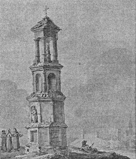Місце пречистенського кладовища. Район вулиці Кривий Вал. Малюнок Струкова. Зображення з книги «Памятники старины въз ападныхъ губерніяхъ имперіи»