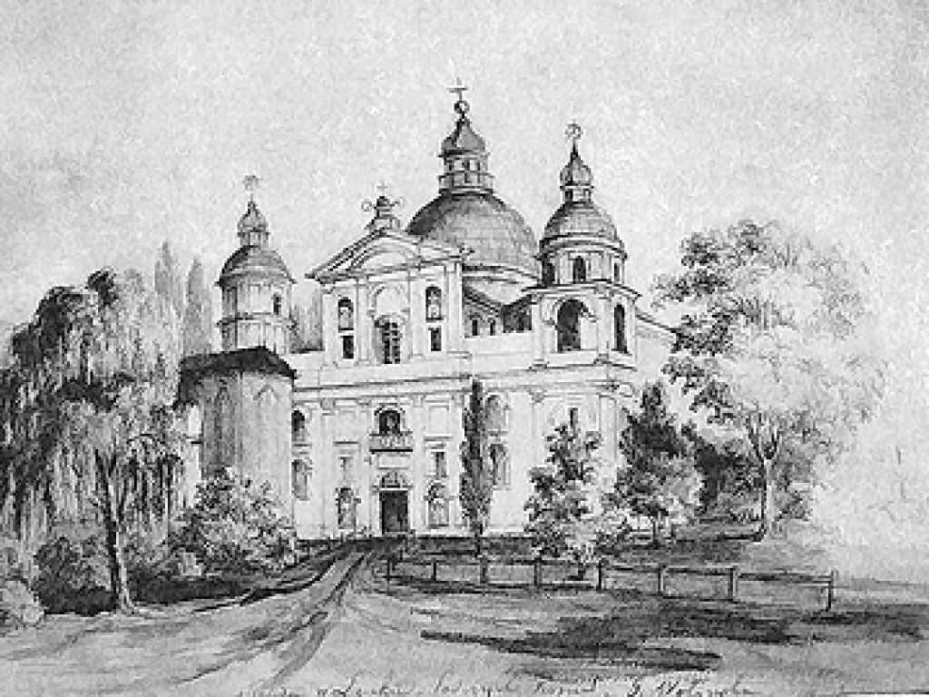 Покровська церква у ХІХ столітті. Малюнок Струкова. Зображення з книги «Памятники старины въз ападныхъ губерніяхъ имперіи»