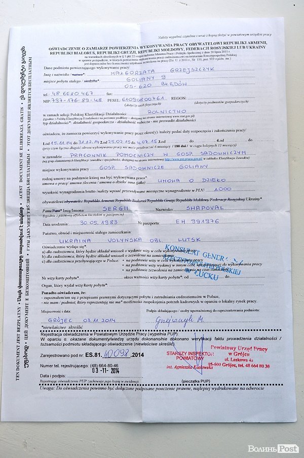 Запрошення справді вже є, як і годиться, з усіма печатками і підписами. Мене начебто кличуть працювати у господарство з заробітною платнею в тисячу злотих на місяць.