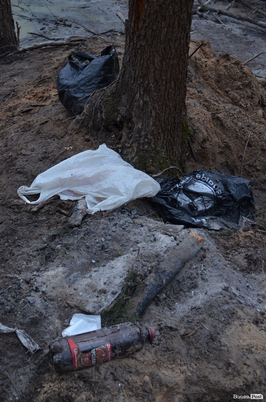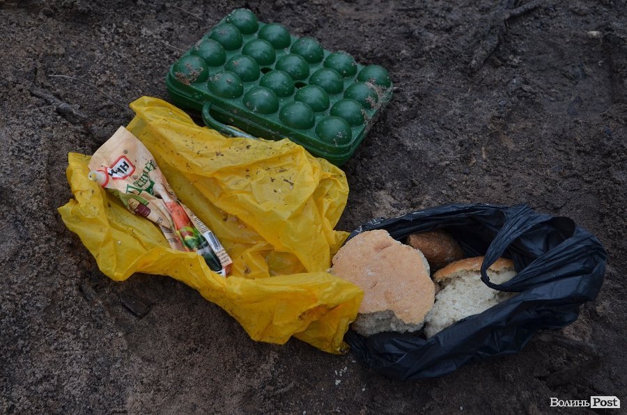 Щодо місця видобутку «сонячного каміння», то кожна з ям сягає глибиною до декількох метрів в глибину. Поруч з ямами – пакети з харчами (хліб, кетчуп, сало), залишки від соків та пива.