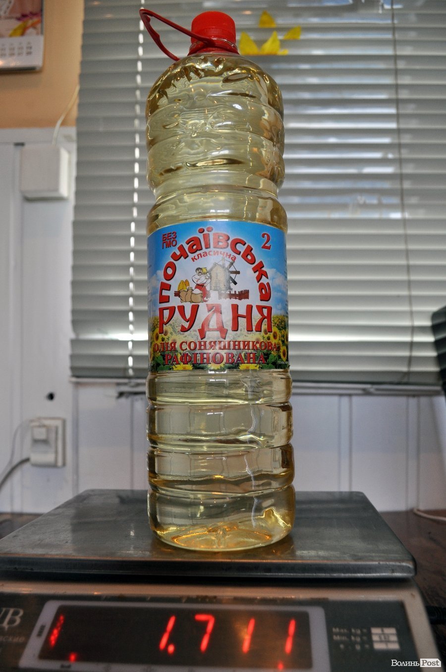 1. 1 л соняшникової олії важить 920 г (маса нетто). Допустиме відхилення 10 г, додаємо вагу тари орієнтовно 30 г. Виходить, що пляшка з олією 1 л мала б важити не менше 940 г. Натомість пляшка ТМ «Почаївська Рудня» важить лише 901 г. Різниця – 39 г.