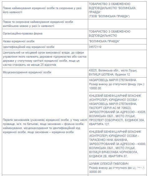 Втім з першого липня реєстраційними відомостями видання відбулися дивні метаморфози. Відомості про Ніну Тарасенко з реєстру зникають, а керівником "Волинської правди" зазначено Олексія Шумика.