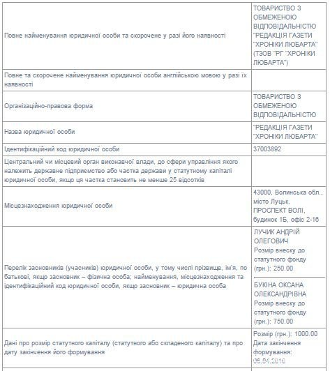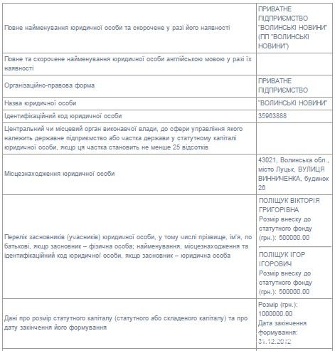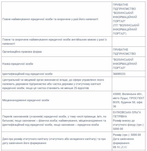 Засновником ПП «Волинський інформаційний портал» є головний редактор сайту Ольга Булковська: