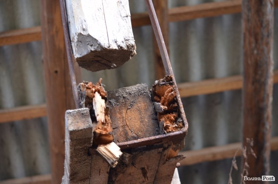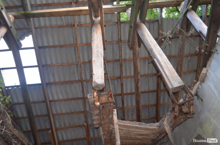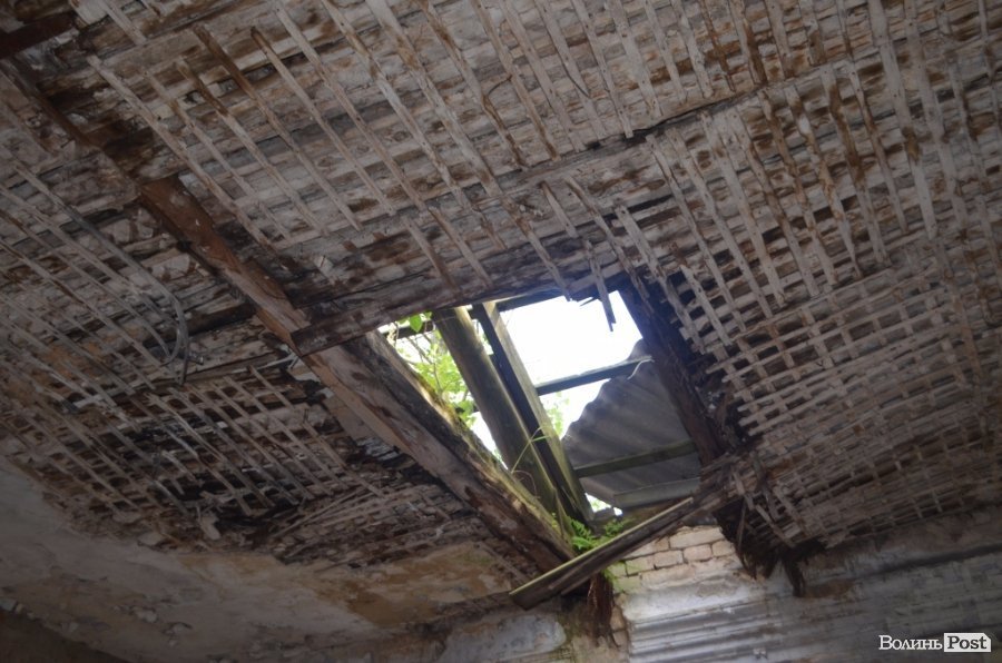Як потрапляєш всередину будівлі, то відразу розумієш, чому молодь перебазувалась на подвір’я: стеля та підлога виглядають вкрай ненадійно. Дах подекуди тримається на вже прогнилих балках, а в одній з кімнат весь обвалився на підлогу разом із цими ж дерев'яними балками.