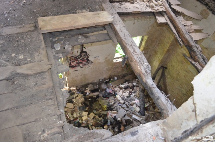 Просто збоку від «візитної картки» Луцька – замку Любарта – знаходиться закинутий будинок, який вже встиг перетворитись на смітник, нічліжку для бездомних та місце збору місцевих наркоманів.
